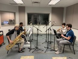 The UCF Saxophone Quartet, directed by Dr. George Weremchuck, records